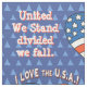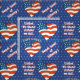 Original patriotic pattern features American flag filled hearts against a repeating blue on blue triangle design with "I Love The USA" arched above every other heart. You can personalise the 2 other captions which default to: "United We Stand divided we fall" and "Sweet Land of Liberty" or keep as is.
