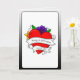 Valentine's Day Card. Pretty floral graphics with flowers and roses in yellow, red, purple and orange with a tattoo graffiti style art hand drawn heart which can be personalised with names, a personal message or date. Inside of card can be customised too.