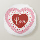 This cute design features a tri-colour heart of pink, white and red with polka dots and "Love" in the centre in a white script font. This charming round throw pillow can be personalised on the back with two names to express to your special someone how much you love them. A perfect gift for any occasion!