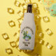 Personalised Van Life Family Road Trip Bottle Cooler, with customisable family name and mountain scene against a warm beige background. Ideal for family reunions and vacation road trips, and great as a keepsake or souvenir item when you add the year of travel and personalise with your family name. Underneath on the base, you can add your initials by replacing the CUSTOMIZABLE MONOGRAM. Get matching can and bottle coolers in various colours for all the family to make your next trip a holiday to remember.