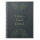 A travel journal with two sun or star light bursts on a vintage style dark blue background. The name and title text can be customised to say anything you like.