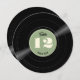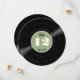 A sage green retro vinyl record style round paper table number sign for your wedding. This fun round sign features bold fun easy-to-read numbers and the label is personalised with your names. Whatever kind of music you love, this nostalgic LP style table number is an elegant accent for your wedding tablescape Country, disco, hip hop, metal, rock and roll, or standards, your guests will be in the groove.