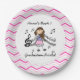 Violin Player paper plates features a stick figure girl violin player design with a wide border of chevron stripes of pink, light pink, grey, and white. You can personalise these violin player paper plates!