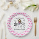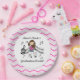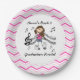 Violin Player paper plates features a stick figure girl violin player design with a wide border of chevron stripes of pink, light pink, grey, and white. You can personalise these violin player paper plates!