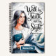 A watercolor portrait of a woman holding a Bible with a soft background of clouds and the words "Walk By Faith, Not By Sight" in modern elegant bold calligraphy style. personalised with name.