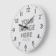 Personalised Wall Clocks Custom Big Round Photo. Feature your own photo and text on this clock. The numbers stay on your image. Perfect for decorating your home, kitchen or office. For best results use a square image.