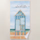 Personalised Watercolor Beach Hut Beach Towel