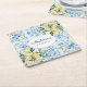 Personalised Watercolor Blue Italian Tile Lemon Square Paper Coaster
