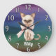 Personalised Watercolor Cat Photo & Name Wall Large Clock