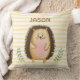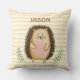 Personlize cute watercolor hedgehog yellow stripes throw pillow.