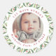 Personalised Watercolor Holly Christmas with Photo Classic Round Sticker