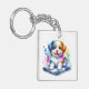 Pretty watercolor style ai art with a cute little Mutt puppy dog personalised key chain.