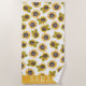 Personalised Watercolor Sunflower Beach Towel