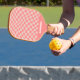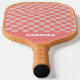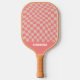 This cool pickleball paddle features a wavy retro chequerboard pattern in coral with a place to personalise your paddle with your name! Additional colour variations are available in our Zazzle shop, or message us for additional customisation!