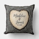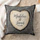 Couples woodland wedding anniversary pillow in herringbone & plaid. Cute rustic design for a romantic gift.