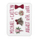 Magnet design features an original illustration of a row of classic wedding designs including a bell, bowtie, flower bouquet and boutonniere. Just personalise with your information.