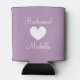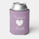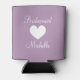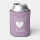 Personalised wedding can cooler for bridesmaids. Custom lilac lavender purple and white wedding can coolers with cute heart. Classy design with name or monogram letters. Cute love symbol design. Make one for with for team bride, bridesmaid, maid of honour, bride, matron of honour, mother of the bride etc. Create your own cosy wedding favour / souvenir for guests at your party. Romantic theme beverage holder design. Perfect for alcoholic drinks like beer. Also available for bottles. Elegant script typography. Custom cosy cooler for chic wedding, fancy bridal shower, funny bachelorette party etc.