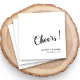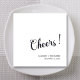 Celebrate your special day with personalised wedding cocktail napkins with names! These stylish napkins are perfect for your wedding, bridal shower, engagement party, or anniversary. Featuring a modern cheers calligraphy design in black on a white background, these napkins are both elegant and fun.