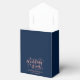 Personalised Personalised Wedding Day Elegant Navy Blue Gable Favour Box with a white bow and beautiful calligraphy . Best wedding party favour box ever. Add Bride and grooms name and date of wedding. .
