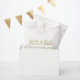 The design features two gold hearts and personalisation of the bride's and groom's first and last names, and the wedding date.