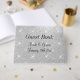 Personalised wedding guest book with sparkly cover. Classy design with glittery background image and elegant typography. Personalise with name or bride and groom plus date. Luxury details for your special day.