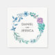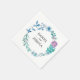 Style your wedding with this gorgeously elegant blue and purple floral personalised wedding napkin to match your invitations and favours.