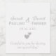 The design offers two silver hearts and personalisation of the bride's and groom's first and last names, the wedding date, and a message to the guests.