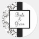 Personalised Wedding stickers with a black and white swirl background. Get the matching postage to complete the look. Also available with monograms, or the names of the bride & groom.