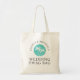 Welcome the bridal party and out-of-town guests to your wedding festivities with a "swag bag" filled with goodies and items to make their stay comfortable and memorable. This whimsical tote bag design is highlighted with a round palm tree logo in aqua and white. The bride and grooms names curve around the round logo. All of the text may be personalised with your desired text. The tropical styling of this design make it a great choice for beach weddings, destination weddings or weddings with a tropical theme.
