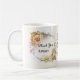 A pretty personalised wedding Thank You mug to give a special thanks to your bridesmaids or other people of importance on your special day. The mug shows an elegant floral design with leaves, roses and a golden lining. Customisable for other situations as well.
