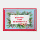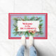 Beautiful, festive door mat is filled with holiday botanicals, red berries, candy canes and Christmas gifts against a background of a blue sky with twinkling snowflakes. A red and sky blue border frames the outer edge. Personalise it to say your family name by using the "Personalise this template" link. Your holiday guests will feel so welcome when they see this mat on your door step this holiday season!