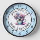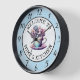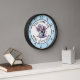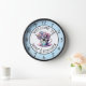 The size of the clock is dramatic and the abstract alcohol ink design is soothing and intricate at the same time. I chose the black frame that adds pop to the blue and gold design. The gold printing would be better in a slightly darker or larger font. I love it and I’m looking for just the right place in ny new apartment. I would recommend this clock for a personal gift or a present. I feel that the quality is excellent for the money! I’m a bit of a clock nut so I’m pretty particular about my purchases. The clock is larger in diameter than many if the clocks I have, so it stands out very well. I think a slightly darker printing color and a moderately larger size would best suit a professional decor or add more impact in a work place item.