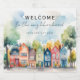 Heartwarming Design: The watercolor neighbourhood illustration radiates charm and a sense of community, making it the ideal complement to a bottle of celebratory wine.