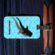 Humourous Silhouette Whale Shark with shadow on a blue tile swimming pool background Luggage Tag - Personalise with a name or any text that you wish to add.