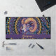 Elevate your workspace with this Personalised Whimsical Aries Zodiac Dot Mandala desk mat, bringing both style and functionality to your desk. This beautifully intricate design centres around a stylised ram’s head, representing the bold and dynamic energy of Aries. The ram is adorned with elaborate swirling patterns and spiralling horns, highlighted by a rich palette of purples, blues, and golden hues for a vibrant and captivating visual appeal. Surrounding the central motif is a concentric arrangement of decorative arcs, featuring repeating petal-like and teardrop shapes reminiscent of traditional mandala art, adding a touch of symmetry and elegance to the design. Perfect for enhancing your productivity space, this desk mat offers a smooth, comfortable surface for working, gaming, or writing, all while serving as a stunning artistic statement. Personalise it with your name to make it truly unique and meaningful.