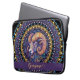 Protect your device with style using this Personalised Whimsical Aries Zodiac Dot Mandala laptop sleeve. This beautifully designed sleeve showcases an intricate mandala centred around a striking stylised ram’s head, capturing the bold and adventurous energy of Aries. The ram is adorned with detailed spiralling horns and swirling patterns, set against a rich colour palette of purples, blues, and golden hues that bring depth and vibrancy to the design. Encircling the ram is a concentric arrangement of decorative arcs, filled with petal-like and teardrop shapes reminiscent of traditional mandala art, lending an air of elegance and symmetry. Crafted for both protection and aesthetic appeal, this customisable laptop sleeve is perfect for anyone who wants to make a statement while safeguarding their tech. Personalise it with your name for a one-of-a-kind accessory that blends functionality with artistic beauty.