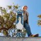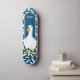 Add a name or your own custom text to create a personalised skateboard. This skateboard features a realistic illustration of a white duck with orange bill and feet against a navy blue background accented with white feathers.
