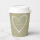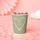 Chic Personalised Bridal Shower Sage Green Paper Cups with White Heart Detailing
