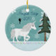 This Fantasy Personalised Holiday Christmas Ornament features a Pretty White and Grey Unicorn with an Enchanting Silhouette Fairy. They are walking through a snowy forest enjoying the magical snowflakes. Personalise with a name and year.