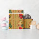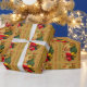 This fun, vintage-inspired wrapping paper featuring Santa Claus climbing a Christmas tree will bring Ho! Ho! Ho! cheer to the holidays! Presented in traditional Christmas colours of red, green, and gold, with golden bells and a bow at the top of the tree, the personalised Christmas tree offers four customisable typography fields that currently read "Xmas Cheer Ho! Ho! Ho!", and "Best wishes for a very Merry Christmas!" Personalise this festive Christmas gift wrapping paper or purchase as is.