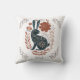 Personalised woodland rabbit folk art throw pillow with earthy autumn colours and florals in brown and black on a mauve background. Magical hare and whimsical style for the dreamer in you!