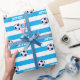 Personalised Wrapping Paper, Soccer, Blue/White Wrapping Paper