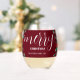 Personalised Wreath Burgundy Merry Christmas Name Stemless Wine Glass