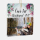 This is a lovely ornament, and great that you personalise the back with details of birthday, weight, etc.. My only tiny disappointment is the "My First" doesn't stand out very well on the background. More than happy with the printing of the photo and the writing on the back.