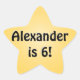 Celebrate a birthday party or fun special event with this favour sticker or envelope seal. Matches our fun fantasy world invitation. Add custom name and age on a yellow gold star shaped laser cutout sticker decal. A colourful theme for any great kids celebration.