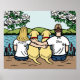 Personalised Yellow Labrador Family Blonde Long Haired Mum and Brown Haired Dad with beautiful two Yellow Labrador Retriever dogs. They are having a rest at the lake. White Magnolia is blooming. You can personalise. Nice gifts for dog lovers who love Labradors! Created by Naomi Ochiai.