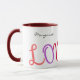 Yellow Labrador Valentine's Day Mug. Unique and funny Labrador Retriever Cartoon created by Naomi Ochiai from Japan. An adorable Yellow Labrador writing sand letters with a bough. Great Labrador gifts for dog lovers who own Yellow Labs! You can customise text and more!