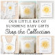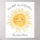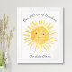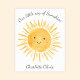 This cute baby nursery wall decor features a yellow smiling sun and "Our Little Ray Of Sunshine" in stylish script typography.