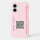 Choose Colours and Font - iPhone Case Example with Your Special QR Code Info and Custom Text Personalised Modern iPhone Cases Gift - Add Your QR Code - Image or Logo - photo / Text - Name or other info / message - Resize and Move or Remove / Add Elements - Image / Text with Customisation Tool. Choose / Add Your Favourite Background and Text Colours / Font / Size ! Please see my others projects / designs. You can also transfer this designs to more than 1000 Zazzle products. Good Luck - Be Happy :)
