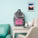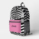 Personalised Zebra Pattern backpack by Ricaso. A fun black and white animal print patterned backpack. NOTE, it is best not to include a name if this is for a child.